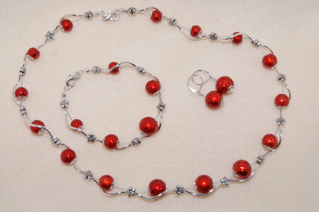 Oprócz tego na zamówienie cioteczek stworzyłam dla nich trzy komplety z wykorzystaniem koralików spectra lub perłowych, skręcanych rurek oraz przekładek kwiatków 🙂 Pierwszy powędrował do Emilii 🙂