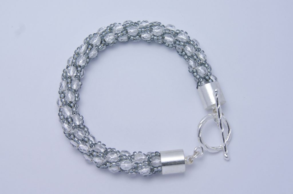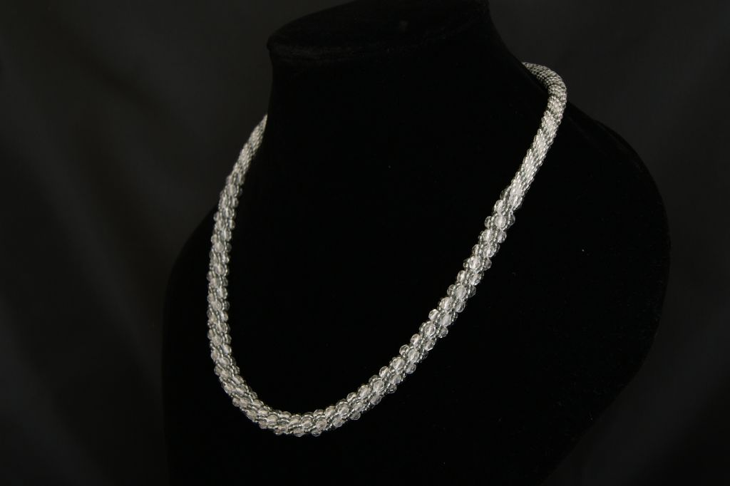 Do zrobienia go wykorzystałam koraliki TOHO 11o Silver-Lined Crystal i Gray oraz koraliki Fire Polish Silver-Lined Crystal 🙂 Naszyjnik łączy w sobie zwykłego węża szedełkowo-koralikowego oraz sznur turecki 🙂