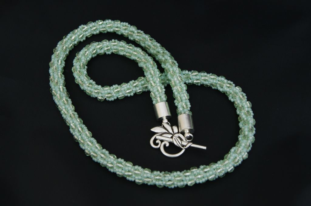 Jakiś czas temu wpadły mi w łapki koraliki Polish Fire Silver-Lined Lt Peridot, jednak nie miałam pomysłu co z nimi zrobić, aż w ten weekend wspólnie z mamą dobrałyśmy do nich koraliki TOHO w tym samym kolorze w wersji Milky i powstał sznur turecki 🙂