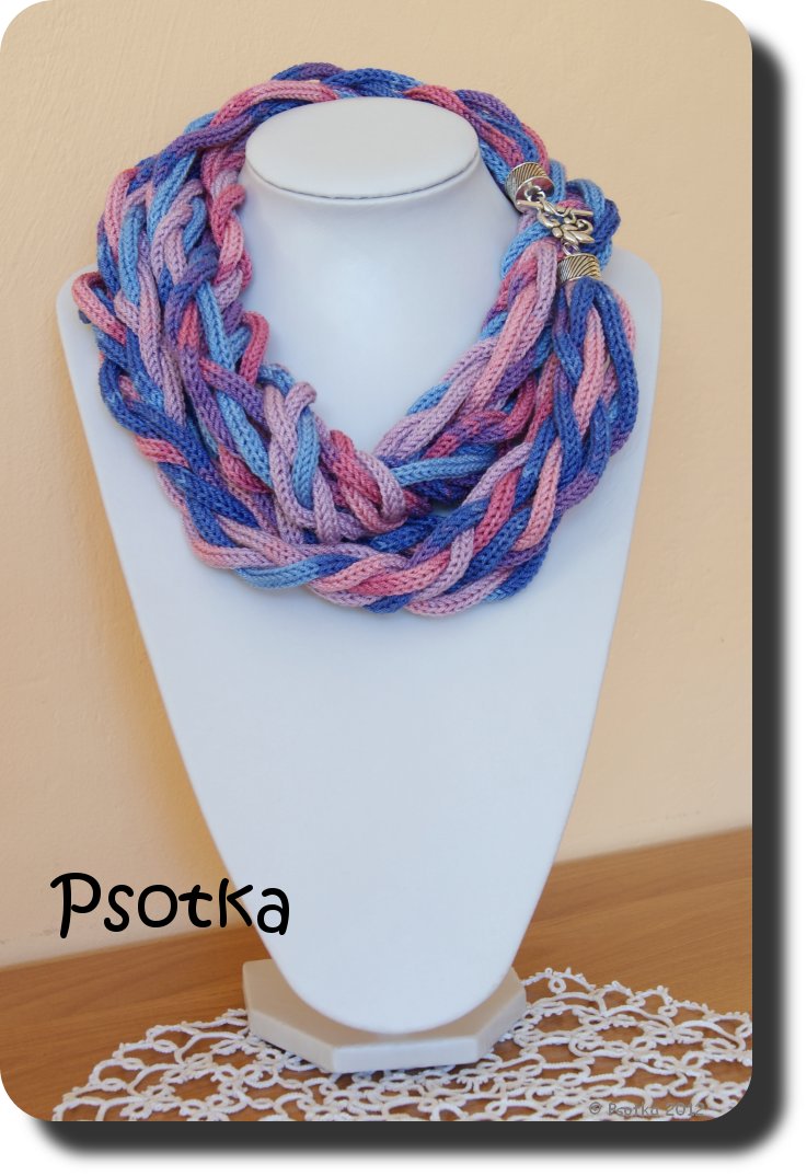 Ostatni w tej porcji szalików czeka na nową właścicielkę, a wykonany jest z włóczki Diva Batik Design 3240 bedącej mieszanką kolorów różowego, liliowego, wrzosowego, niebieskiego, jeansowego.