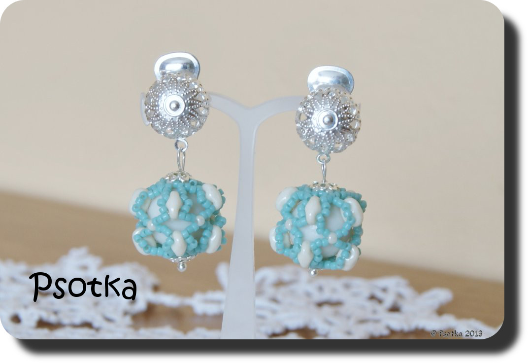 Jako dodatek zrobiłam klipsy kuleczki oplecione ażurowym wzorem z wykorzystaniem koralików SuperDuo 🙂