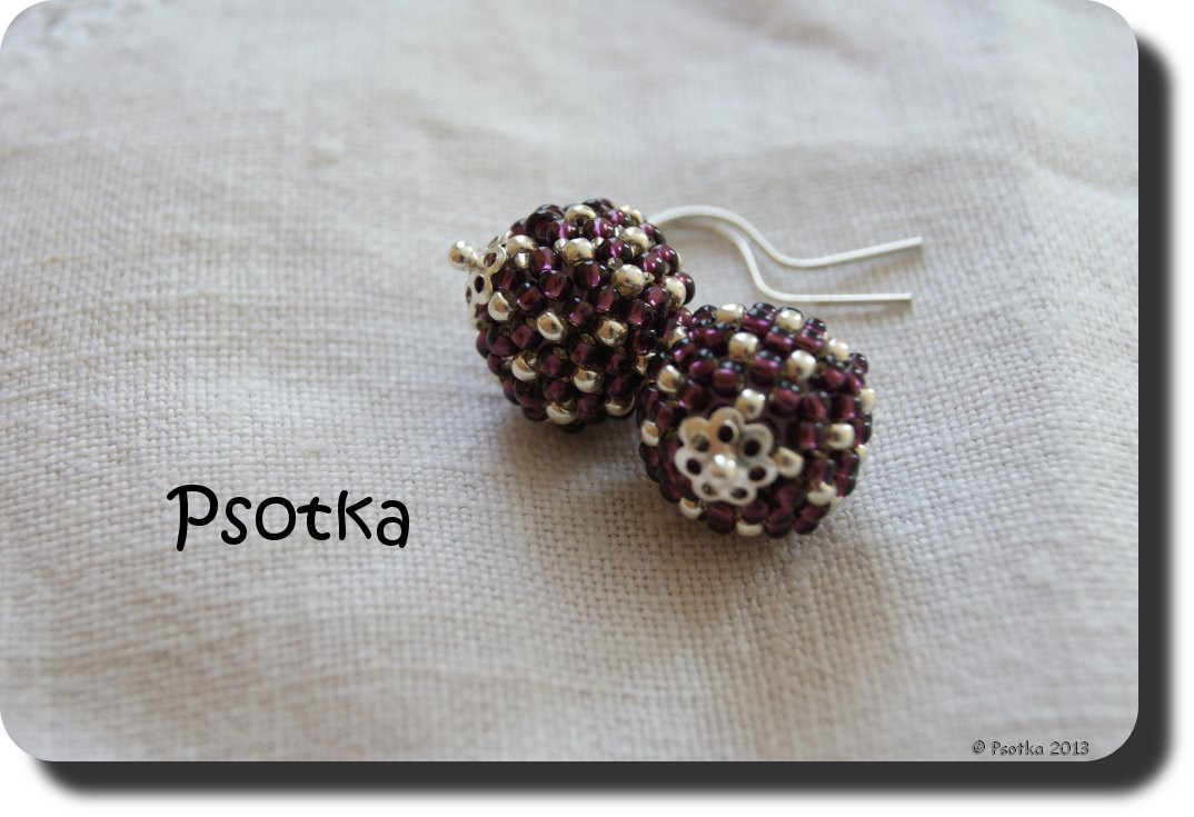 W trakcie pobytu w Ciechocinku na zamówienie powstały malutkie kuleczki w kropeczki, z których nowa właścicielka była strasznie zadowolona i się z nimi nie rozstawała 🙂 Wykorzystałam przy nich koraliki TOHO Round 11o Silver-Lined Amethyst i Pemanent-Finish Galvanized Aluminium.