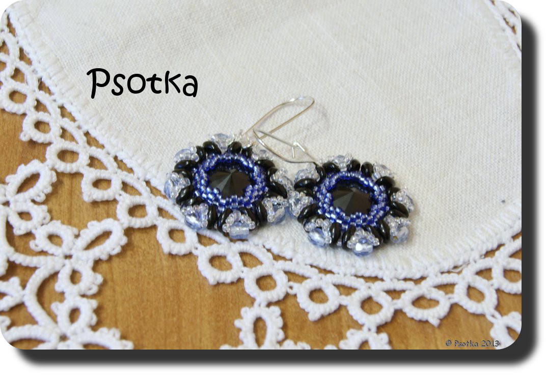 Kolejne dwie pary zaczęłam od oplecenia kryształków Swarovski Rivoli Jet oraz koralikami TOHO Treasure 12o i Round 15o w kolorach Silver-Lined Topaz lub Sapphire, a następnie wykończyłam koralikami SuperDuo 5×2.5mm Jet, TOHO Round 11o i 15o Trans-Rainbow Crystal oraz Fire Polish 4mm Silver-Lined Topaz lub Lt Sapphire.