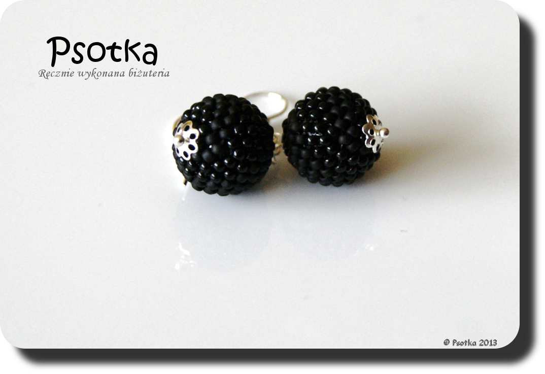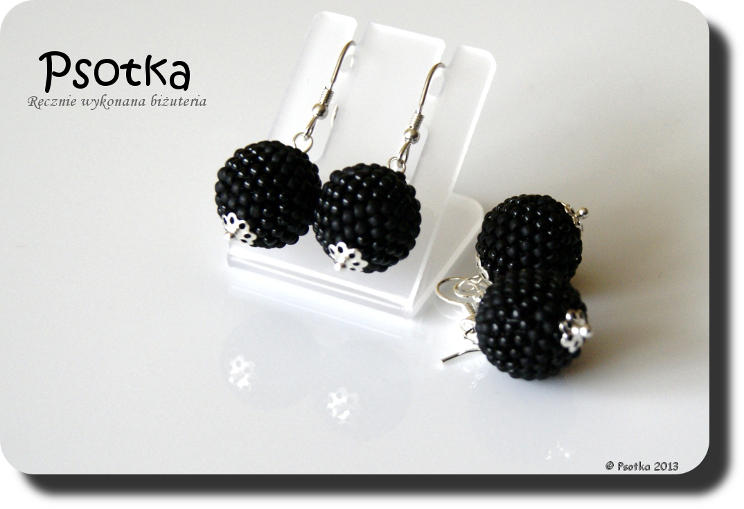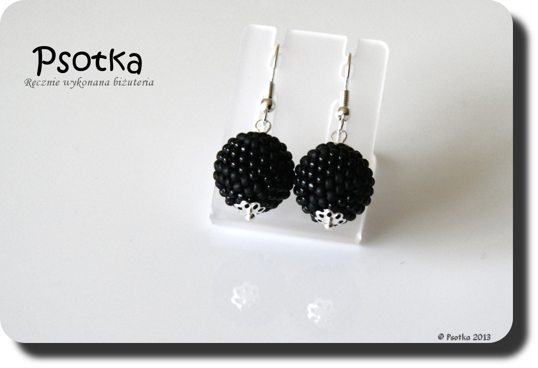 Poza tym powstały dwie pary czarnych kolczyków w tych samych kolorach. Jedna para do kompletu do powyższych bransoletek, druga jako dodatek do naszyjnika z jedną kuleczką stąd 🙂