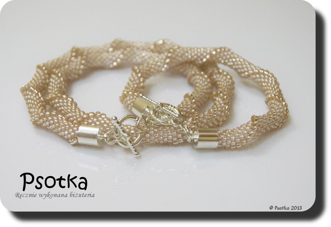 Naszyjniki i bransoletki wyszydełkowałam będąc w sanatorium, natomiast wykończyłam po powrocie do domu 🙂 Potem musiały poczekać na sesję zdjęciową i moje natchnienie do pisania 🙂 Oba mają nanizane koraliki w sekwencji 1a2b2c2b. Oto one 🙂