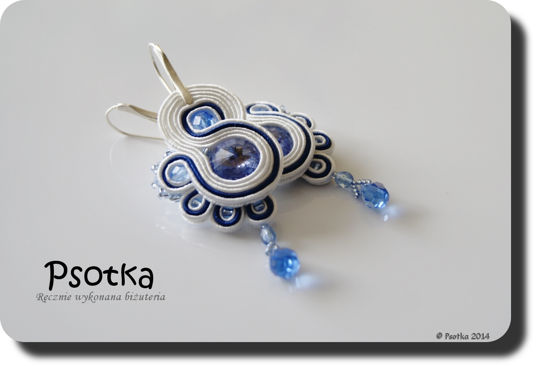 Wykonane zostały z białego i granatowego sznurka z dodatkiem koralików TOHO oraz czeskich kryształków.