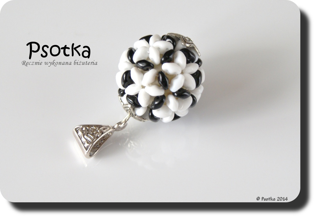 Ostatnia na dzisiaj, ale na pewno nie ostatnia wydziubana, w zawsze modnej czerni z bielą, wykonana z koralików SD Jet i Opaque White.